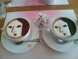 そのよ〜じやのカフェで、カプチーノをたのむと、こんな感じで、かわいいマスコットガールが描かれてきます。